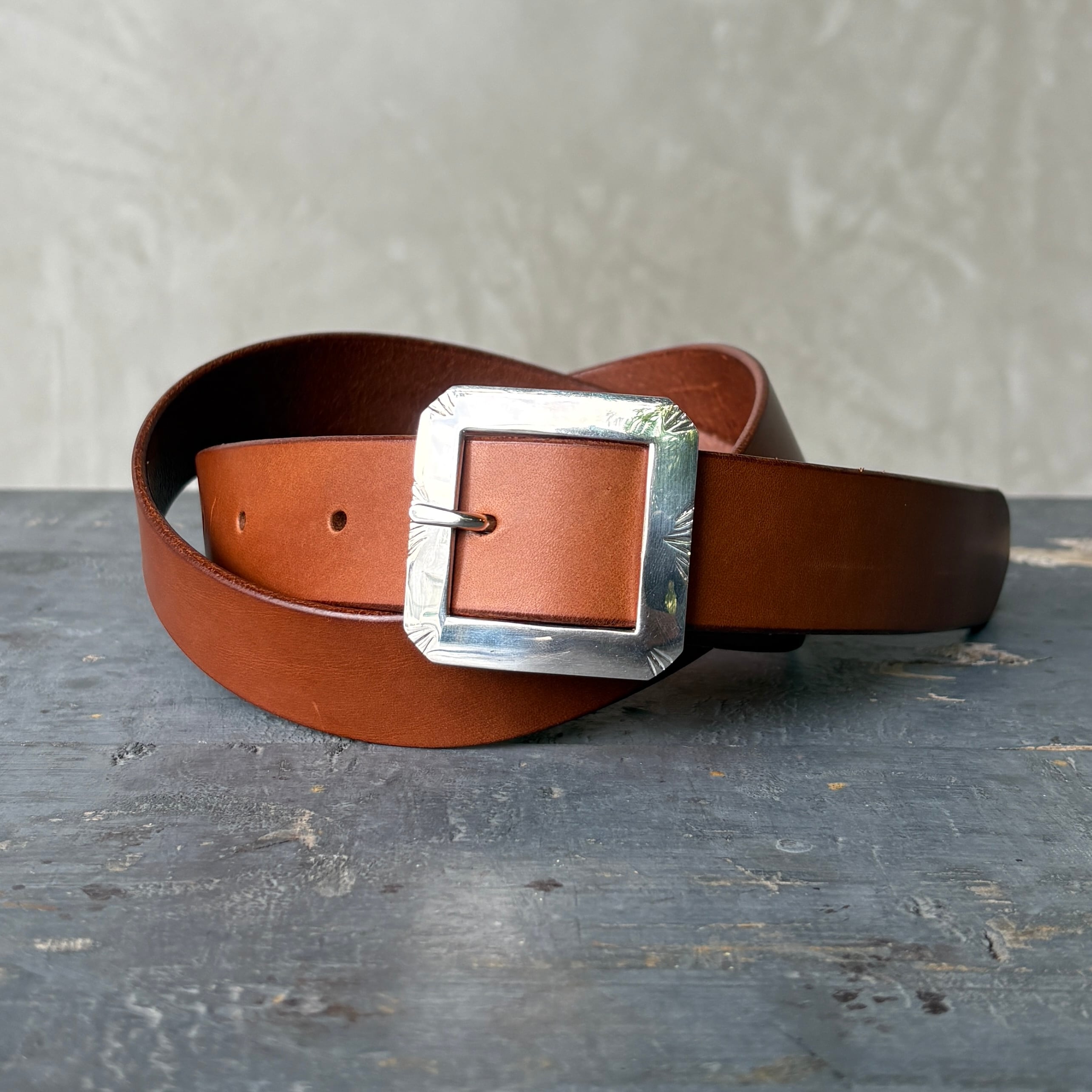 JANTIQUES × MOTO Silver Buckle Leather Belt (Brown 30mm)